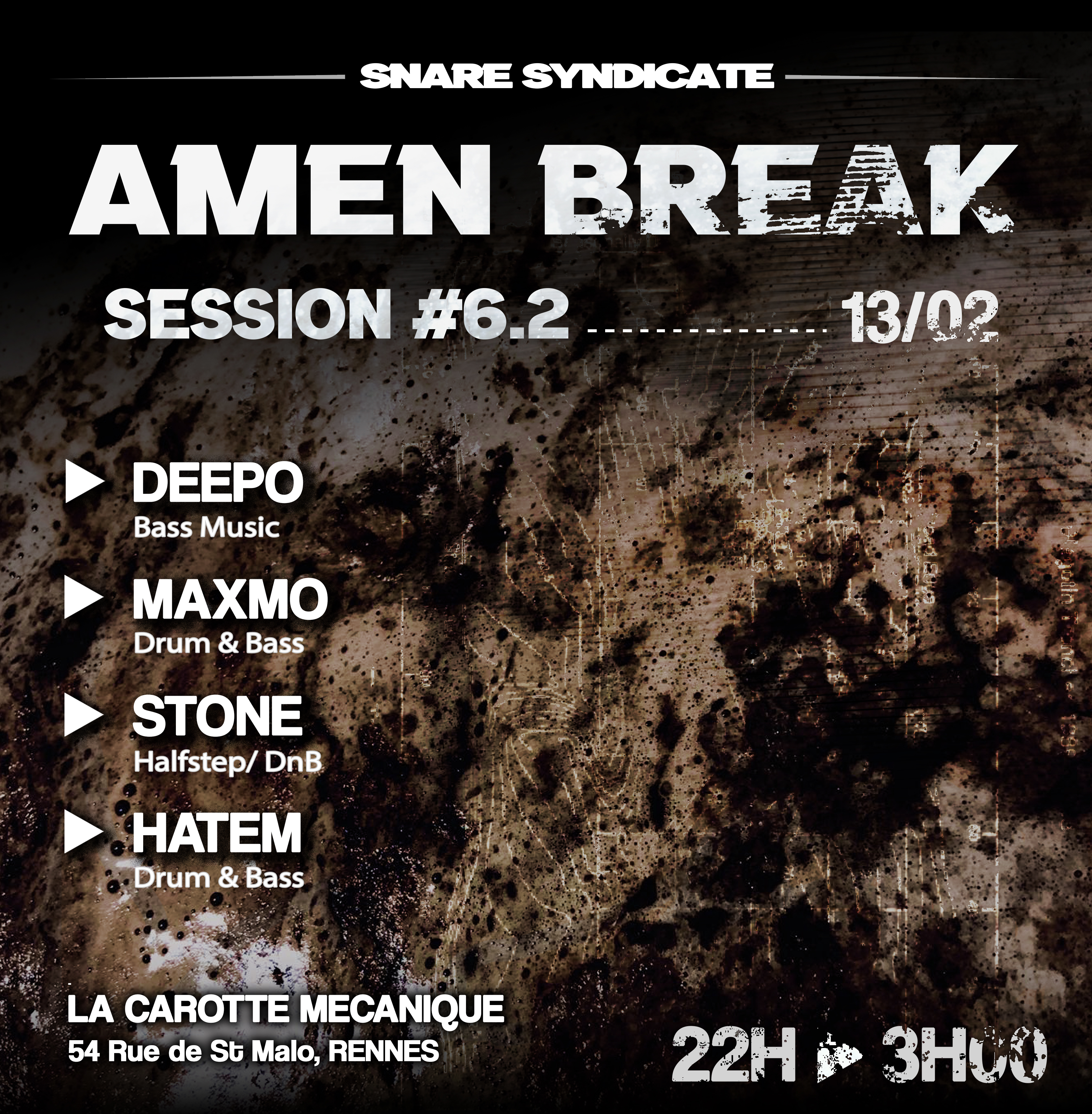 Merci beaucoup au Black Bear pour leur accueil royal, à Laurent et Maël pour la sono et le réglage, et à Stone qui à envoyé un set monstrueux dans un registre si approprié au syndicat !